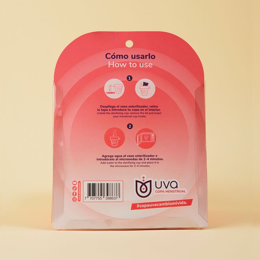 - Fácil de usar: Solo agrega agua, introduce tu copa y caliéntala en el microondas por unos minutos para una desinfección completa.