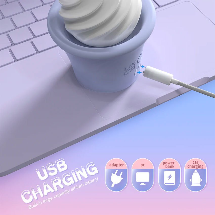 Mini vibrador para zonas erógenas en forma de helado. Ideal para la estimulación de zonas  externas como clítoris, pezones. Cuenta con 9 modos de vibración, que podrás graduar al ritmo que desees.